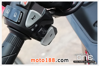 ●雙離合器版本的左轪把上設(shè)有+/-轉(zhuǎn)檔按鈕,升及降檔的反應(yīng)十分敏捷。
