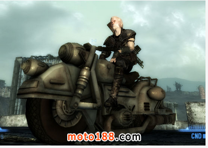 該款車由電腦游戲 Fallout 3 演變而來,號(hào)稱世界末日之戰(zhàn)車!一位名叫 Chris Riffel 的高中生某天突發(fā)奇想,從上述游戲中獲得靈感,在其朋友和老師們的協(xié)助下最終完成了 Fallout 3 現(xiàn)實(shí)版的摩托車的設(shè)計(jì)和制造。制造和組裝過程完全 DIY,自己動(dòng)手切割和焊接鋼架,發(fā)動(dòng)機(jī)則由報(bào)廢件改造而成。