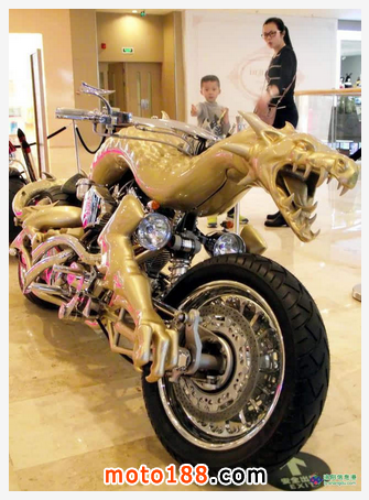 這款機(jī)車長(zhǎng)約2米,車身環(huán)繞著一條“金龍”,該車市場(chǎng)估價(jià)在220-300萬(wàn)之間。