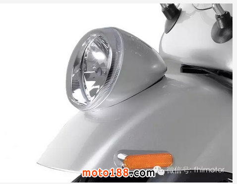 既然大燈下移,車頭部分自然清爽了許多。鍍鉻行李架,無(wú)燈設(shè)計(jì)車把加上擋風(fēng)板,美觀、實(shí)用且對(duì)味!而儀表和車把更加有特點(diǎn),有點(diǎn)類似于LXV車型,方向柱蓋采用機(jī)械圓形儀表,油量顯示和時(shí)速表完全分開,下方還有單獨(dú)時(shí)間顯示和功能提示燈,讓人一目了然。車把采用裸露設(shè)計(jì),燈光控制鍵居左,啟動(dòng)功能鍵居右。