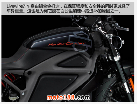 它的出現(xiàn),真可謂顛覆。在Livewire的身上,我們沒能看到最具代表性的V型發(fā)動機(jī),也聽不到那渾厚的且富有韻律的“馬蹄音”,而“哈雷式”的粗獷與硬朗也不復(fù)存在。如若不是油箱上的哈雷標(biāo)志,甚至讓人無法分辨它的身份。對了,似乎稱之為“油箱”也有些不恰當(dāng)了。