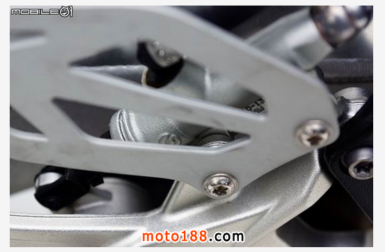不同于前輪煞車,后輪煞車總泵采用 Brembo 制品,并且也有 Race ABS 系統(tǒng)輔助煞車力道分配,確保騎士不會(huì)因?yàn)樯奋嚥僮魇д`造成輪胎鎖死而產(chǎn)生意外。