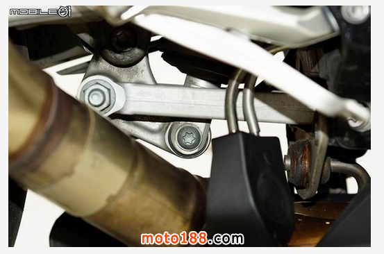 而 S1000RR 上的行車電腦如何知道后輪懸吊運(yùn)作情況?靠的就是這組連桿帶動(dòng)感應(yīng)器,借此由感應(yīng)器回傳資料給行車電腦,再讓電腦依照其他資料來(lái)調(diào)整后輪避震器設(shè)定,一切電子化調(diào)整,方便性以及科技程度絕對(duì)是給予好評(píng),但穩(wěn)定度及耐用度則需要時(shí)間考驗(yàn)羅。