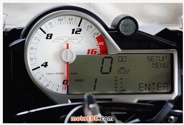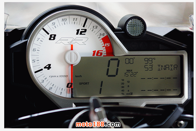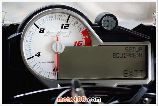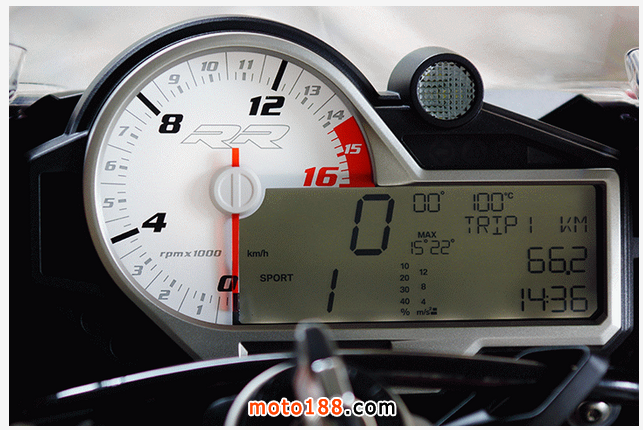 在標(biāo)準(zhǔn)模式下,只要按下左把手的 TRIP 按鈕,就可以在總里程(ODO)、剩余燃油可行駛里程(RANGE)、單趟里程 1/2 (TRIP 1/2)、平均每百公里消耗油量及平均時(shí)速等功能進(jìn)行切換,其中最實(shí)用的大概就是剩余燃油可行駛里程,因?yàn)?S1000RR 并沒有配置格數(shù)油表,所以能夠得知油箱剩余油量的方法大概就屬于這個(gè)最可行,而且這個(gè)功能顯示的里程數(shù)也還蠻準(zhǔn)確的,可以做為參考使用。