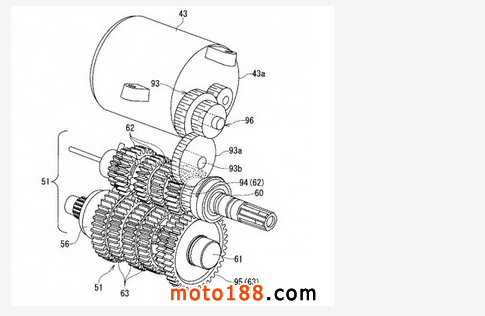 從專利圖可以看出Suzuki將一顆電動(dòng)馬達(dá)至于汽缸后方,