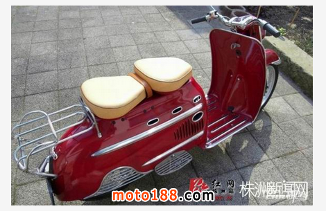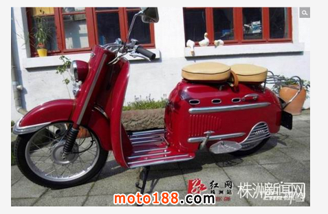 請輸入這臺紅色踏板車的全稱是DKW Hobby,1955年由德國奧迪汽車出品。此車是采用2沖程發(fā)動機的踏板摩托車,做工精致嚴謹,用料扎實,成為現在歐洲很多車迷的熱捧車型。1954-1957年間,奧迪共生產了45303臺DKW Hobby。