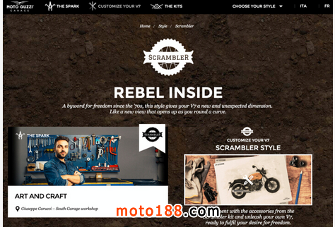 以現(xiàn)行的Moto Guzzi V7為基礎(chǔ),加上了個(gè)性元素和復(fù)古的70年代潮流與顏色, 推出了MotoGuzzi Scrambler