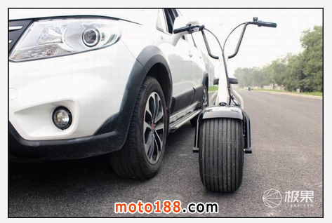 ▲寬大的輪胎讓拐彎變得很奇怪。用戶要像駕駛公路賽道摩托車那樣,身體傾斜側(cè)壓車身,這樣拐彎才稍感順暢。初次騎行,拐彎時輪胎一部分要離開地面瞬間,感覺會與地面有一定的粘連感,讓拐彎動作感覺奇怪而且生硬,適應(yīng)一段時間后會稍好點。