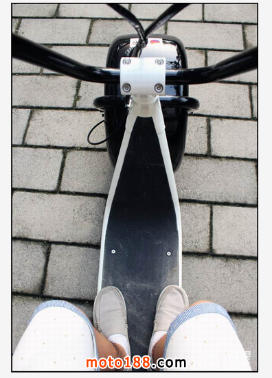 ▲寬大的踏板讓用戶可以自主選擇多種駕駛方式,站著、坐著,或者你關(guān)掉鑰匙用它當滑板人力滑回家。