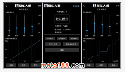 ▲手機端App可以通過藍牙與車輛連接,實現(xiàn)車、數(shù)據(jù)云、App的智能調(diào)節(jié)模式。好玩的是可以調(diào)節(jié)輸出曲線自定義騎行模式。