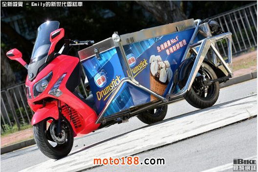 只要是香港人,一講起雪榚車,腦海馬上會聯(lián)想到兩種車:播著藍色多惱河音樂的軟雪榚車,和有一個巨形冰柜的三輪電單車。常見的三輪雪榚電單車,通常都是一位伯伯,開著偉士牌綿羊。所以當我們看見Emily開著她雪榚電單車時,簡直不敢相信自己的眼睛:賣雪榚的人,竟然由伯伯變?yōu)榻憬?。偉士手波鐵殼二沖綿羊,也變?yōu)槿朣YM Joymax 300i自動波綿羊,世界真的變了。