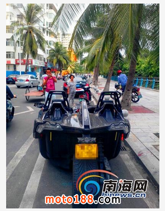 三亞驚現(xiàn)奇異“北極星”摩托跑車 引市民爭相拍照