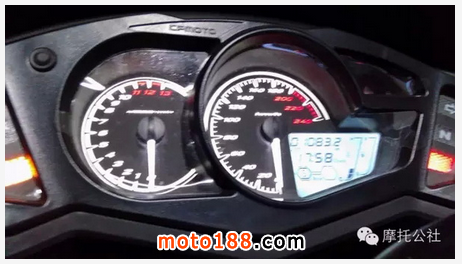其次,儀表右下角液晶屏面積不大,顯示數(shù)據(jù)卻不少,一眼看過(guò)去,有點(diǎn)亂。轉(zhuǎn)速表和速度表占據(jù)了儀表盤的主要位置,但是數(shù)字標(biāo)示既密集又很小,人湊到跟前都不能一目了然,更別提在行駛中了。實(shí)際騎行中,轉(zhuǎn)速表還好大概估計(jì)一下,速度表如果你不是非常熟悉這個(gè)表盤,那就是完全不可能看清楚速度顯示。