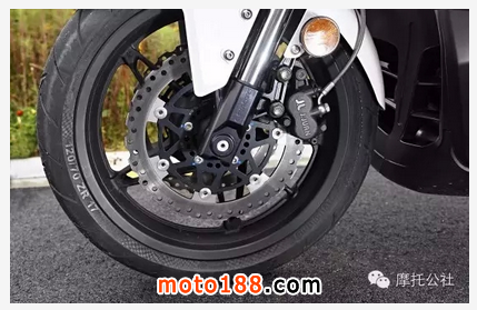 國(guó)賓車配備了西班牙西互剎車,前輪為雙浮動(dòng)浪花碟加雙活塞制動(dòng)卡鉗,后輪為單碟單活塞,標(biāo)配德國(guó)大陸ABS防抱死制動(dòng)系統(tǒng)。整個(gè)制動(dòng)系統(tǒng)表現(xiàn)正常,對(duì)于國(guó)賓車來(lái)說(shuō)是足夠的了。ABS可以通過(guò)儀表上的按鍵手動(dòng)開(kāi)啟和關(guān)閉。
