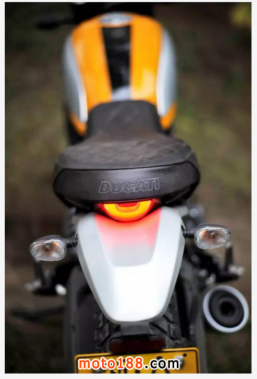 杜卡迪Scrambler的重心非常合適,它的整車高度為1150毫米,座高790毫米,身高170-180厘米的騎士都能輕松地雙腳落地。由于采用了V置雙缸的發(fā)動機,整車重心大約在騎行者大腿的高度。