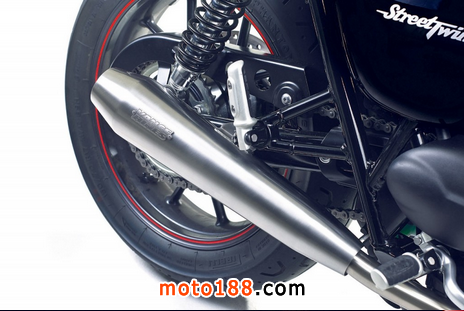 效能的提升也來自于輕量化的六速變速箱,搭配Triumph最新的電子油門與獨(dú)特設(shè)計(jì)的進(jìn)氣箱,整體上雖然是新的系統(tǒng),不過完全不影響經(jīng)典雙缸造型,向后優(yōu)美角度延伸出的雙排氣管,依然能譜出優(yōu)美而飽滿的聲浪,電鍍的亮感,在Thruxton R上更是升等為不銹鋼電鍍質(zhì)感。因應(yīng)引擎的提升,Thruxton在底盤與懸吊上也有新的設(shè)定,除了cafe racer原有的低把位戰(zhàn)斗坐姿沒變之外,硬件上完全可調(diào)的前叉搭配17吋前輪的系統(tǒng),Thruxton R升等為Showa全段可調(diào)big piston前叉搭配后雙槍Ohlins,也是全段可調(diào),剎車則是浮動式Brembo碟盤搭Brembo單體鑄造卡鉗,連油壺都是Brembo。