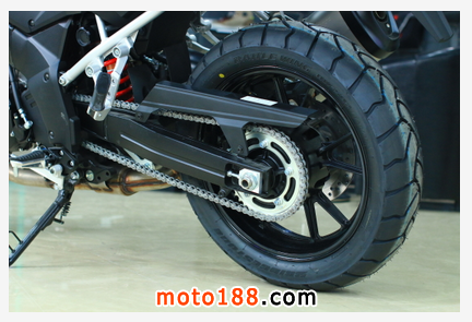 19寸前輪、17寸后輪十輻式鋁輪轂,出廠裝配普利司通戰(zhàn)翼BW-502輪胎。前輪胎規(guī)格為110/70-17,后輪胎規(guī)格為150/70-17。原廠輪胎在公路上的抓地性能尚佳,但在沙土、泥濘路面真是“只見(jiàn)轉(zhuǎn)速不見(jiàn)速度”;而在運(yùn)動(dòng)駕駛當(dāng)車體傾角達(dá)到約30度左右時(shí),因輪胎觸地弧度問(wèn)題會(huì)導(dǎo)致操控段落感。大培子本人只關(guān)注輪胎的性能以及用途,對(duì)寬窄......