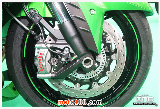 2016年 KAWASAKI為OHLINS特別版的再度進(jìn)階,推出ZZR1400(ZX-14R) Performance Sport特別版,新版採(cǎi)用Brembo M50一體式對(duì)向放射式4活塞前掣動(dòng)卡鉗,較2014 OHLINS特別版的Nissin對(duì)向放射式4活塞更優(yōu)良。另外,改用了Brembo手泵、2 x 310mm Brembo浮動(dòng)前剎車碟及前后剎車鋼喉,用料更優(yōu)質(zhì)。當(dāng)然,同樣有Ohlins TTX39尾避震,而原裝排氣喉為全啞黑色的尾段(相片中的蝎子排氣管需另行購(gòu)買(mǎi)的配件)。