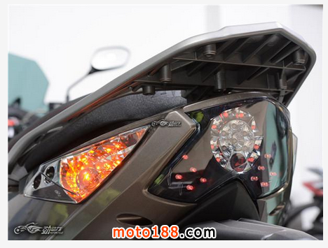 尾燈和后轉(zhuǎn)向燈都采用了LED光源,黑色燈底讓尾部顯得很運動,后貨架還預(yù)留了安裝尾箱的接口。