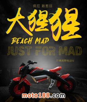 有著瘋狂、敢惹目潮物口號的BEACH MAD大猩猩,是一款性能強勁的沙灘越野電動車。首發(fā)新車采用LG 鋰電池,續(xù)航里程可達 50 公里,擁有10 寸輪胎,爬坡性能強勁,可征服沙灘或 20-25 度沙坡。大猩猩適用于公路、沙灘、河道、草地、林地、戶外越野場地等各類場地。