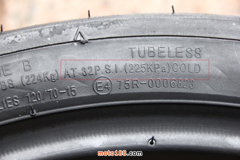 旁邊的一些參數(shù)也一起講一下,4P.R.表示輪胎體采用4層結(jié)構(gòu),層數(shù)越多、載重能力越強。MAX.LOAD 493LBS.(224kg)表示最大負載為224kg、 也可以理解為、承載重量為224kg。LOAD RANGE B,負荷等級為B級(和4P.R,4層結(jié)構(gòu)是一個意思)