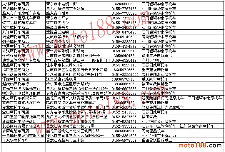 黑龍江整車經銷商名錄