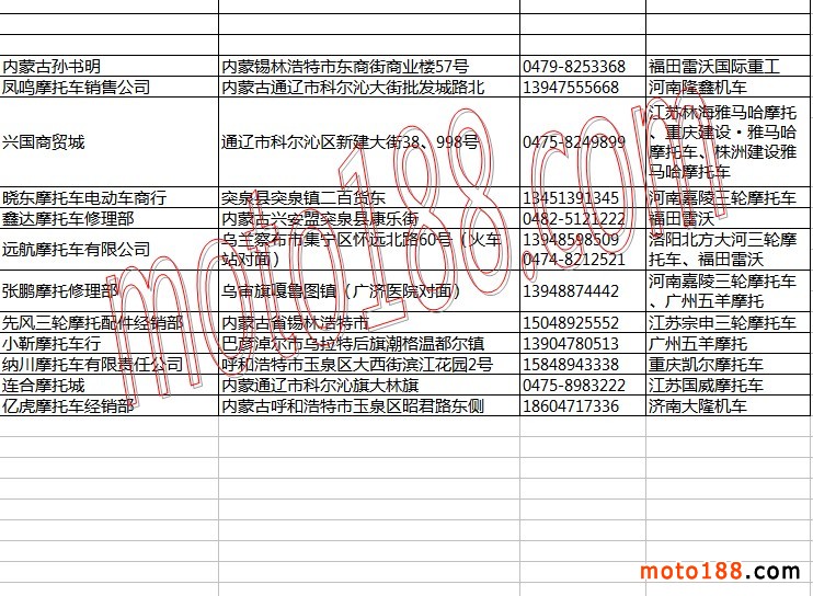 內(nèi)蒙古摩托車整車經(jīng)銷商名錄