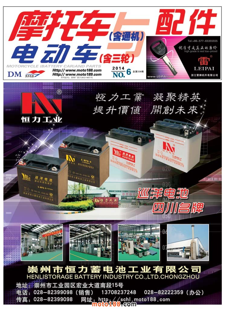 這一期是電池的專題,是摩托車和電動車都必須要用的重要部件。我們從龐雜的資料中精選了十四頁內(nèi)容,其中有一篇是由企業(yè)提供的稿件。我們歡迎企業(yè)能踴躍投稿,將你們的技術(shù)和經(jīng)驗與行業(yè)共同分享,提升行業(yè)整體素質(zhì),同時也可以通過我們這個平臺來提升企業(yè)的知譽(yù)度。