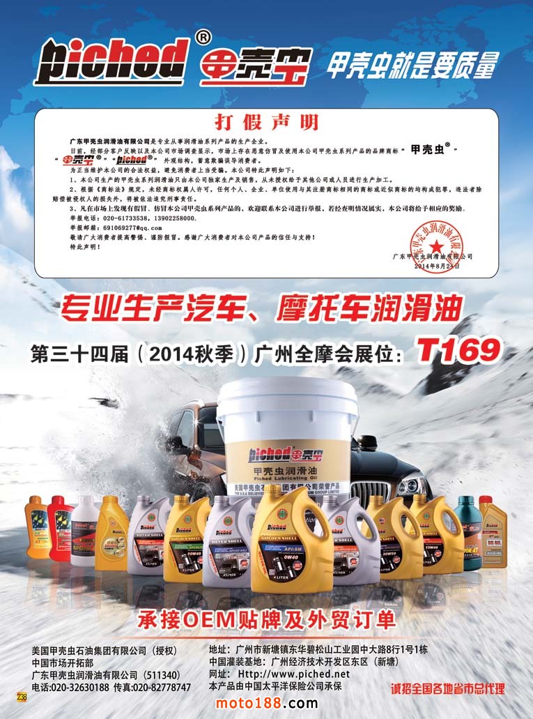 行業(yè)大型展會(huì)——第三十四屆秋季廣州全摩會(huì)會(huì)展期間,由于雜志廣告版面較多,原定出版的配件套缸專(zhuān)題和三輪車(chē)行業(yè)的相關(guān)信息專(zhuān)題移至下期出刊。