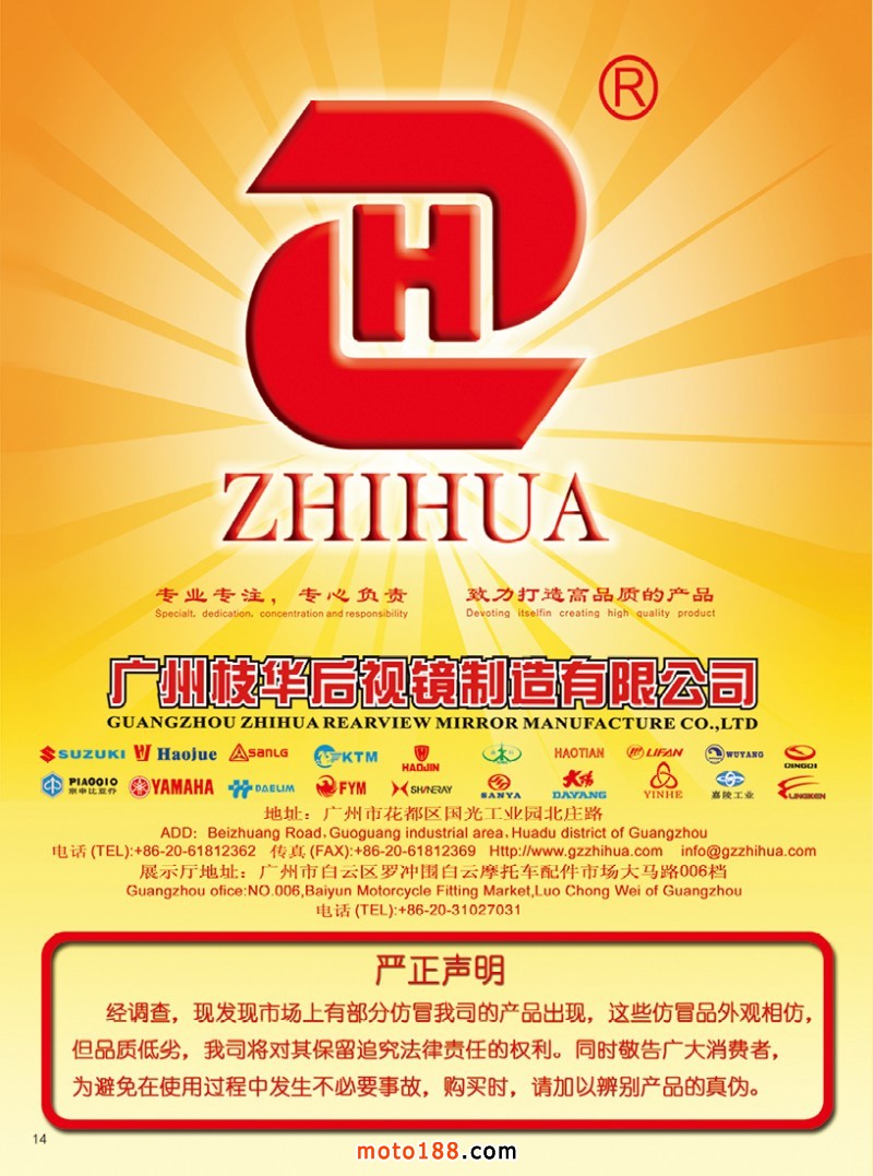 《摩托車與配件》傳統(tǒng)媒體與新媒體的結(jié)合,以及我們腳踏實(shí)地的工作。這一年多來,雜志已經(jīng)華麗的轉(zhuǎn)身,并且拓展出新的發(fā)展空間,可為摩配行業(yè)企業(yè)提供更多的服務(wù)形式。目前我們己基本將全行業(yè)的從業(yè)人員加為微信好友,為國內(nèi)外貿(mào)企業(yè)建了四個群,同時又建國內(nèi)五大市場群,方便了業(yè)務(wù)開展和企業(yè)互動;完成了對全國市場的新一輪的走訪,對國內(nèi)摩配市場有了一個全面的準(zhǔn)確的認(rèn)識;完成了對目前現(xiàn)有摩配生產(chǎn)廠家的資料更新。2017我們蓄勢待發(fā),2018我們揚(yáng)帆起航!