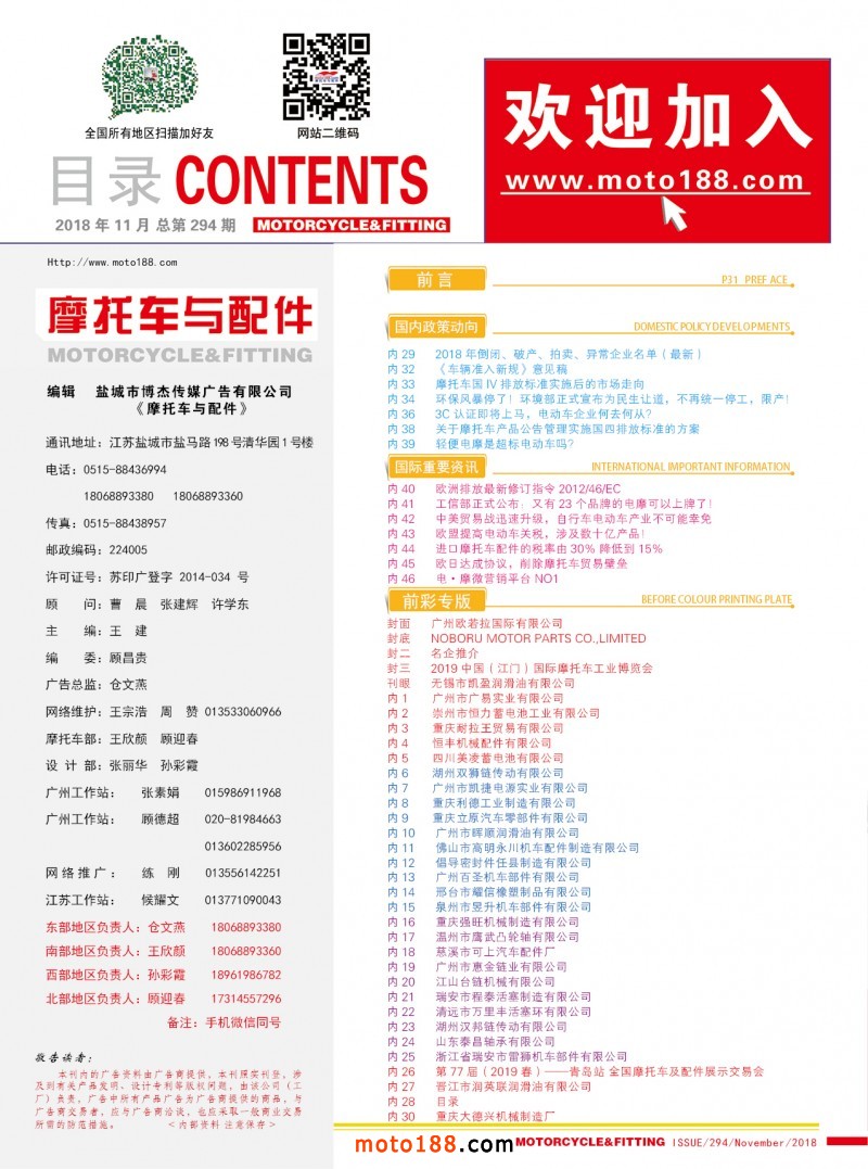2018.11月《摩托車/電動車與配件》雜志,歡迎大家閱讀