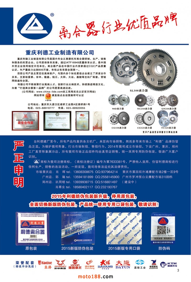 最新升級(jí)的《摩配華南市場(chǎng)指南》升級(jí)版在第76屆廣州全國(guó)摩托車及配件展示交易會(huì)上首發(fā),歡迎朋友們來3109號(hào)展位。接著將在廣州、重慶摩配市場(chǎng)全面派送,在廣州福星、松南市場(chǎng)門口、及白云三個(gè)檔口常年設(shè)立發(fā)行窗口;發(fā)行至廣州、重慶、江浙的幾大板塊主要廠家及全國(guó)的主要摩配市場(chǎng)。