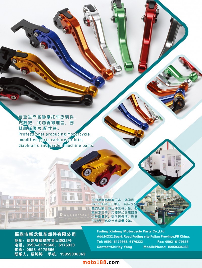 福鼎市新龍機(jī)車部件有限公司成立于1995年,專業(yè)生產(chǎn)各種摩托車改裝件,分離把,水箱防護(hù)網(wǎng),化油器柱塞,浮子,主量孔,油針,針閥,修理包,園林機(jī)械膜片等產(chǎn)品。聯(lián)系方式:15959336363,聯(lián)系人:楊婷婷,QQ:617309118,電話:0593-6179668。
