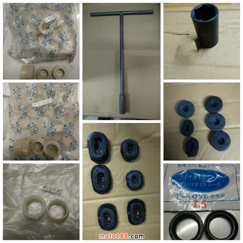 有佛山照明燈泡、剎車拉桿、各種彈簧、啟動珠、臂軸、橡膠件、檔位線、平叉套、緩沖膠、護板鎖和各種維修工具等商品。