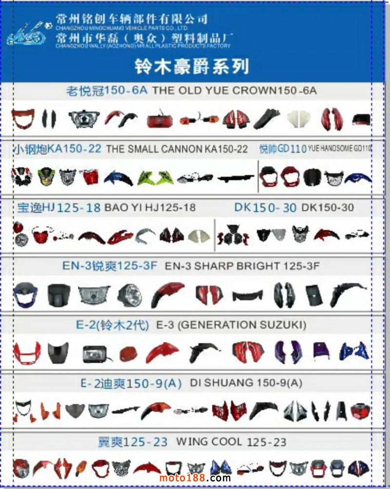 鈴木豪爵(大長江)、本田、雅馬哈、力帆車身塑件(頭罩、大燈、側(cè)蓋、尾燈、前瓦…)
