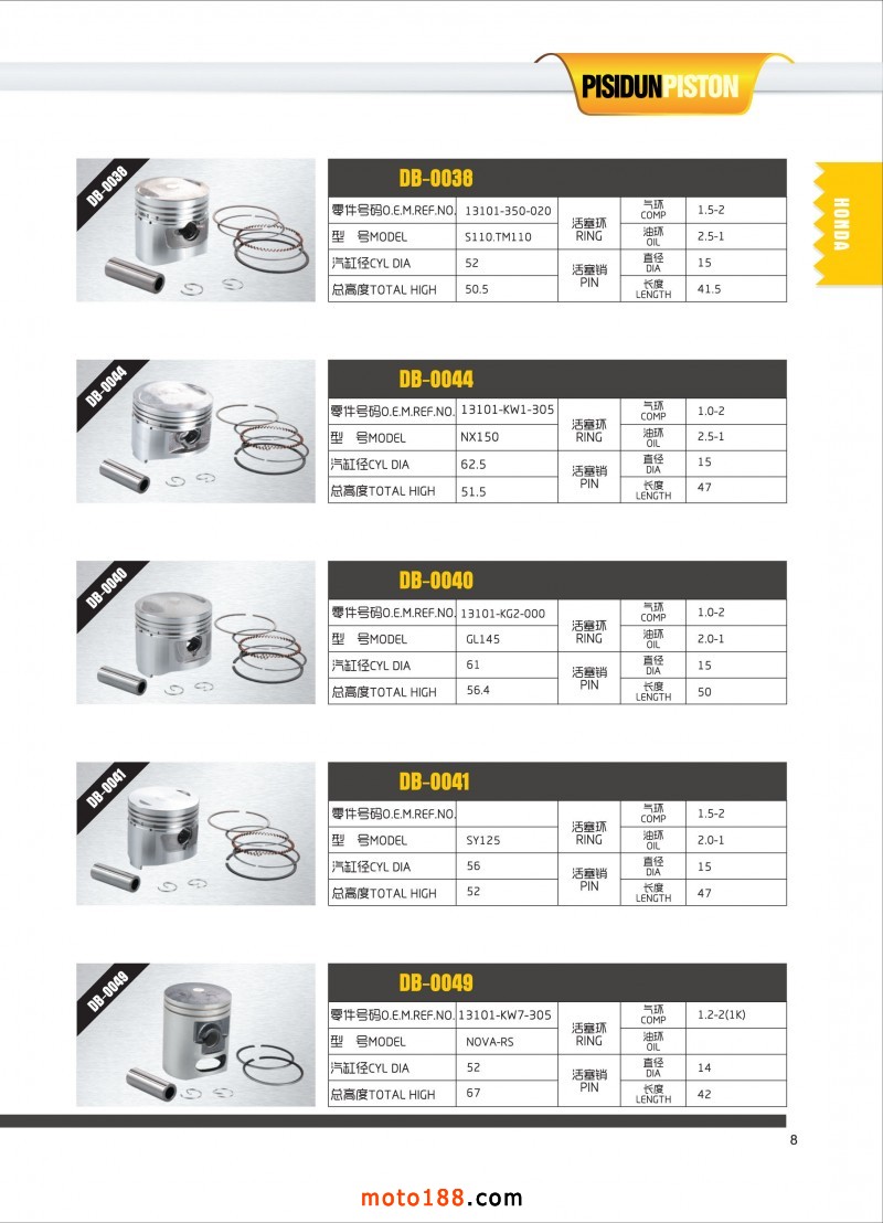 江蘇匹斯頓機車科技有限公司專業(yè)生產摩托車活塞,產品遠銷歐美、南美、中東、東南亞等國家,承接來樣定制貼牌加工。手機:19851512555,微信:PSD19851512555,聯(lián)系人:吳先生。