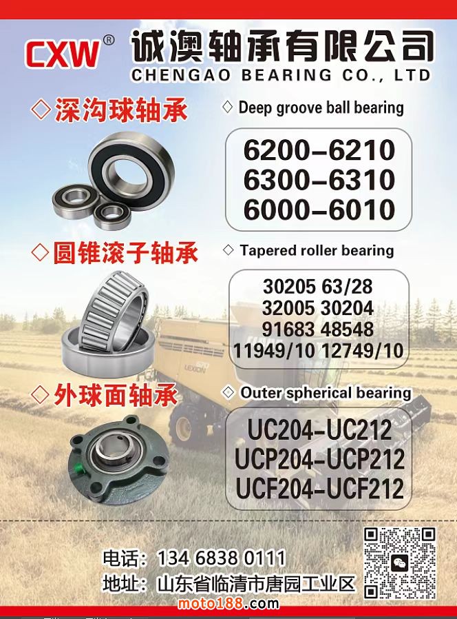 ,公司產(chǎn)品適用于摩托車、電動(dòng)車、電動(dòng)三輪車 及農(nóng)機(jī)、汽配行業(yè)軸承,產(chǎn)品型號(hào):6000--6010、6200--6210、6300--6314、60/22--62/28、63/22--63/28、TMX、GP125、HD125、RS100、XRM、WAVE125、WY125、30205 、32005 、五羊異型、768906、91683/22.5/24等及其非標(biāo)軸承。自產(chǎn)自銷誠(chéng)招國(guó)內(nèi)配件批發(fā)商加盟銷售,承接外貿(mào)貼牌加工。走向國(guó)內(nèi)外市場(chǎng),質(zhì)量穩(wěn)定,價(jià)格合理!歡迎新老客戶來電洽談咨詢,采購(gòu)!