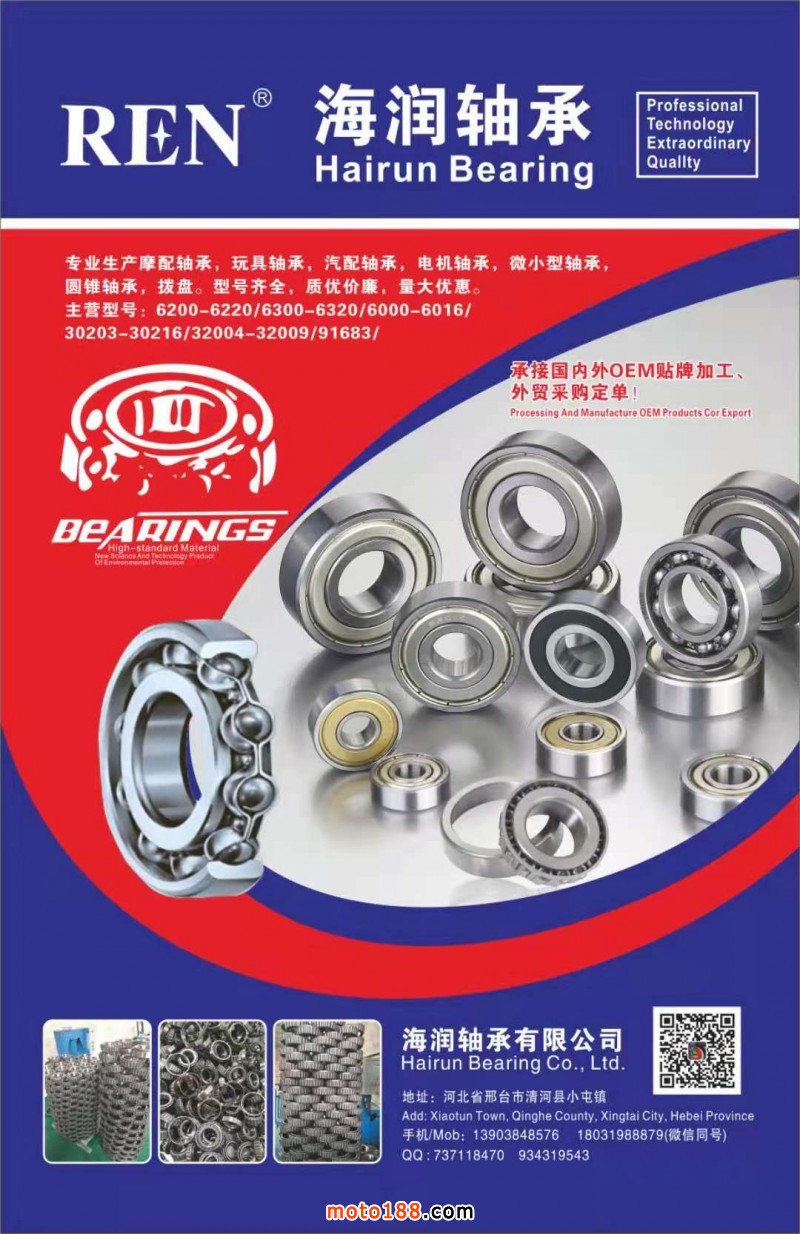 海潤軸承有限公司專業(yè)生產(chǎn):國標非標兩輪三輪摩托車軸承,電動兩輪三輪軸承,型號齊全,質(zhì)優(yōu)價廉6200 6201 6202 6203 6204 6205 6300 6301 6302 6304 6000 6001 6002 6003 6004摩托車曲軸63/28,63/22,62/22,可以做定做客戶彩盒包裝,吸卡等包裝出口于東南亞,中東,南美,非洲等國家承接外貿(mào)公司訂單可貼牌OEM,聯(lián)系電話:18233080978