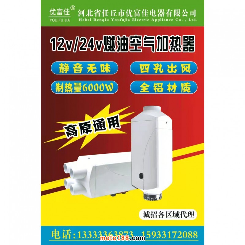 【河北優(yōu)富佳電器有限公司】本公司專業(yè)生產(chǎn):駐車加熱器、柴暖、電動(dòng)車載空調(diào)、12v/24v ,36v-100v , 220v各種型號(hào),各種新款樣樣俱全,可來樣加工定制,歡迎新老客戶來電洽談。