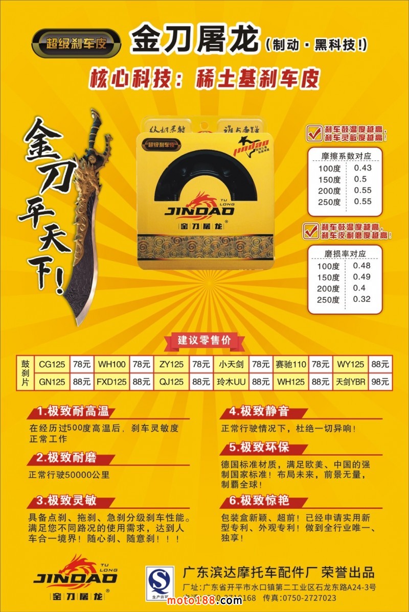 使用過不計其數(shù)的剎車皮,金刀屠龍性能是最好的一付!