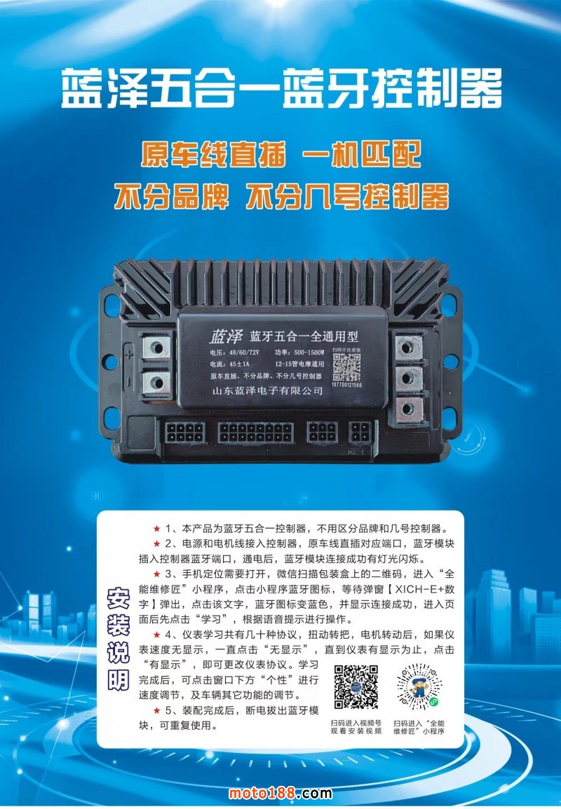 藍澤藍牙五合一控制器,不再區(qū)分品牌、不再區(qū)分幾號控制器,一臺匹配所有新國標電摩,速度可調(diào),最高超速150%。