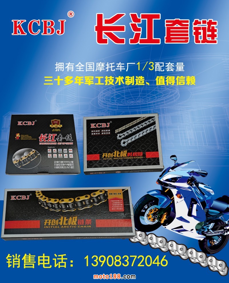 重慶開(kāi)創(chuàng)北極摩托車(chē)有限公司負(fù)責(zé)出品與銷(xiāo)售重慶長(zhǎng)江套鏈、KCBJ大鏈條、KCBJ小鏈條、KCBJ大鏈輪以及KCBJ小鏈輪。重慶長(zhǎng)江鏈條有限公司,其前身是中國(guó)兵裝集團(tuán)旗下大型國(guó)營(yíng)軍工企業(yè)——重慶長(zhǎng)江電工(集團(tuán))有限公司的下屬企業(yè)。后來(lái),重慶中遠(yuǎn)工業(yè)(集團(tuán))有限公司對(duì)該公司進(jìn)行參股并取得控股地位。