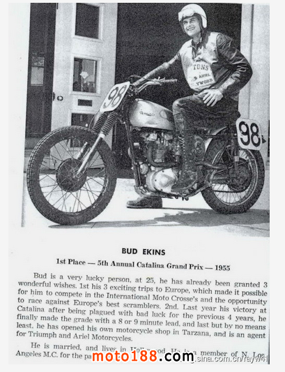 除了與McQueen共同參賽之外,Bud Ekins早在50年代開始便熱衷于各種摩托車賽事,而這輛紀(jì)念車款主要是為了紀(jì)念Bud Ekins在1955年,參加Catalina GP賽事拿下冠軍的出色表現(xiàn)。