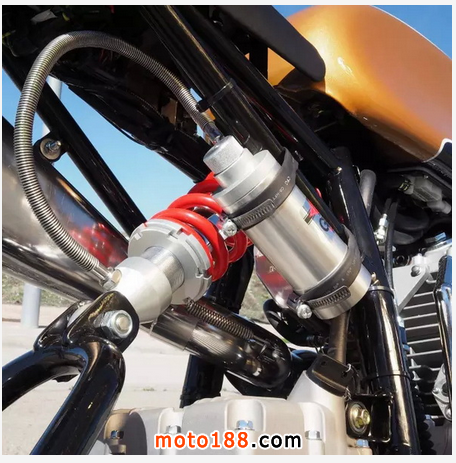 從這臺車身上,你能看到一對阿普利亞RS125的前減震,雅馬哈TZR80的擋泥板,鈴木GSXR的腳踏,只有這幾樣是從舊車上“順手牽羊”的,其余的部分包括后搖臂、副車架、頭燈等都由改裝技師手工打造,減震、消聲器、制動、輪圈等關(guān)鍵部件全使用頂級品牌產(chǎn)品。