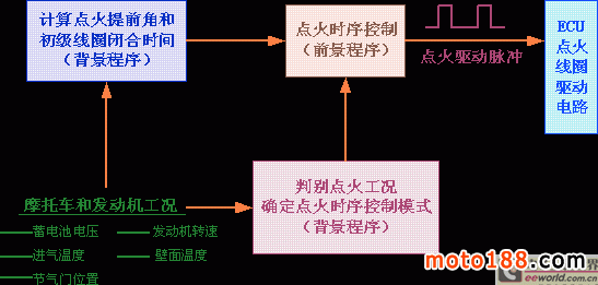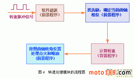 摩托車電控系統(tǒng)不同于一般的控制系統(tǒng),由于摩托車上飛輪較小,發(fā)動機(jī)轉(zhuǎn)速波動較大,并且轉(zhuǎn)速最高達(dá)10000轉(zhuǎn)/分以上,對于系統(tǒng)的實(shí)時(shí)響應(yīng)速度要求非常高,這些要求突出體現(xiàn)在對曲軸位置及轉(zhuǎn)速檢測、噴油正時(shí)及點(diǎn)火正時(shí)的實(shí)時(shí)控制等方面。