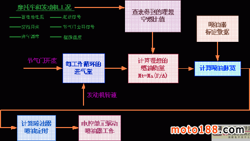 噴油脈寬=基本噴油脈寬×加速加濃修正×減速減稀修正×蓄電池電壓修正因子