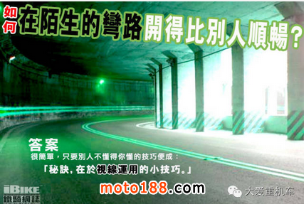 駕駛電單車(chē)的樂(lè)趣,除了自由奔放之外,還有處理連 綿彎道的樂(lè)趣。車(chē)廠的製作技術(shù)和駕駛?cè)说募夹g(shù)高低,在應(yīng)付連續(xù)彎道時(shí)便會(huì)無(wú)所遁形。車(chē)種受先天性所限,應(yīng)付彎道的潛質(zhì)沒(méi)有太多改造空間。但人類(lèi)有學(xué)習(xí)能 力,可以通過(guò)知識(shí)學(xué)習(xí)和肌肉記憶來(lái)提升彎道技術(shù)。要愉快地在山林之間獨(dú)走,要無(wú)拘無(wú)束地在海岸線之間暢游,必需擁有正確的操控技巧和視線運(yùn)用。以下時(shí)間, 我們集中討論視線運(yùn)用: