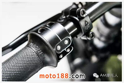 得益于Motogadget家的全套電子組件-m-Unit,m-Button控制組件,m-Lock無鑰匙啟動組件,m-Switch及鍍鉻的復古儀表的使用,使得車體非常簡潔。當然,K&N空濾、Tarozzi頭燈、LED轉(zhuǎn)向燈剎車燈、新的mini電池組及新排氣等等都功不可沒,整體才營造出如此簡潔的視覺效果。而綠色白條紋的涂裝更是點睛之筆,優(yōu)雅范兒十足。