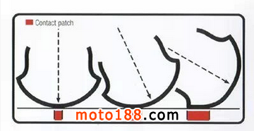 摩托車(chē)天性是垂直向前行駛,直到被某種力迫使轉(zhuǎn)向,前輪的入彎就是這種力之一。這種強(qiáng)迫的動(dòng)作制造出了前輪和地面的摩擦,這種摩擦迫使車(chē)輛入彎并且按照一定的角度走完整個(gè)彎道。但盡管這樣,輪胎依舊是會(huì)滑動(dòng)的,向外滑動(dòng),這就是滑動(dòng)傾角。