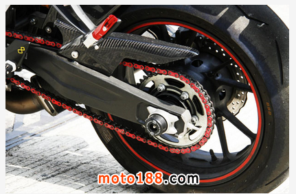 首先,這臺(tái)MT07貼上Yamaha周年版拉花車(chē)身貼紙連輪圈貼,外觀非常醒神,加上 兩邊的水箱邊冚及肚兜冚,營(yíng)造STREETFIGHTER車(chē)款的感覺(jué)。另外,添置了實(shí)用的SW-MOTECH保護(hù)支架、TERMIGNONI排氣喉、 LIGHTECH腳踏、OHLINS尾避震、BREMBO直泵牛角、碳纖維尾沙板及多項(xiàng)RIZOMA優(yōu)質(zhì)改裝部品等等........,令車(chē)款外觀與性能 也有所提升及美化。